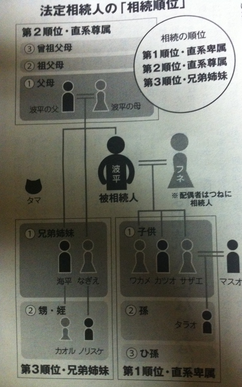 第1順位 直系卑属・・・優先順位は子供であるサザエ・カツオ・ワカメ。次に孫のタラオ。